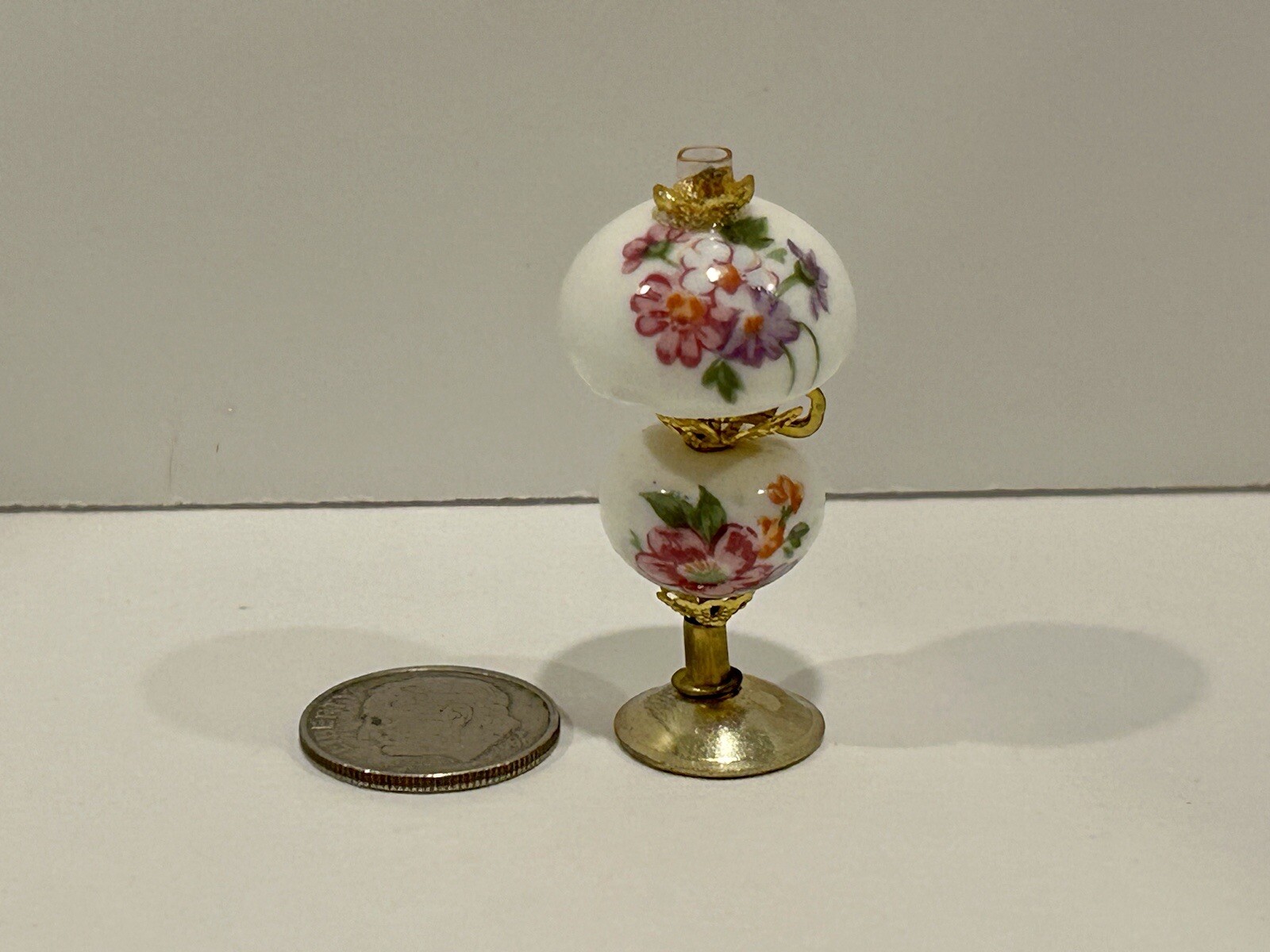 Dollhouse Miniature Porcelain Bone China Painted Hurricane Oil Lamp Non Working Ebay